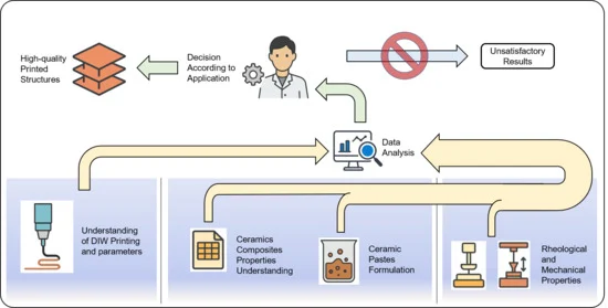 In additive manufacturing technologies, the use of pastes and inks based on materials such as clay to create three-dimensional objects layer by layer has opened new possibilities in fields such as engineering and biomedicine. This review article aims to provide a comprehensive understanding of 3D printing of ceramic pastes through Direct Ink Writing (DIW), also referred to as Robocasting. DIW offers specific advantages for ceramic 3D printing, including the ability to extrude highly loaded pastes with customized rheological properties to accommodate a broad spectrum of ceramic compositions, varying from conventional clays to advanced ceramics. It is characterized by filament deposition control, which facilitates the fabrication of complex, porous, or customized architectures while simultaneously minimizing material waste. Through a bibliometric analysis of the literature published between 2020 and 2024, the most relevant studies regarding printing system architectures, ceramic paste formulations, and adjustment of parameters to obtain high-quality parts were identified. This work presents relevant and accurate explanations of the DIW technology, supporting researchers and industry professionals seeking to initiate or improve ceramic 3D printing processes for a wide range of applications.
