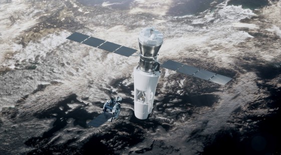 Animation showing possible operations for ESA’s reusable laboratory Space Rider deploying an inspection drone.